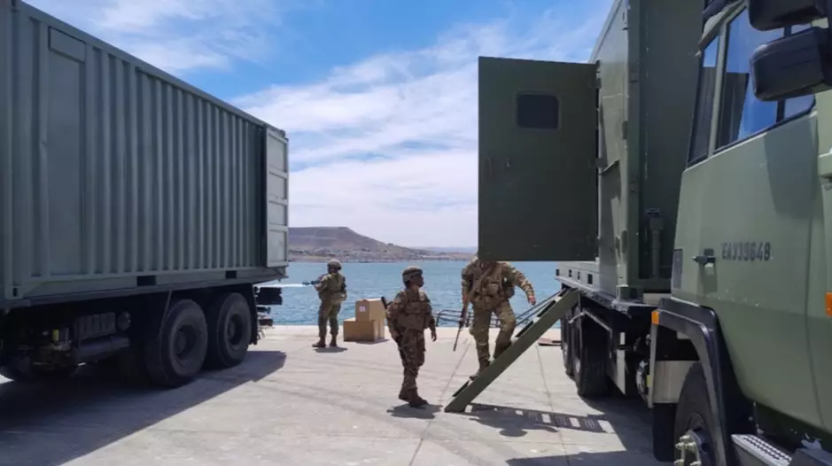 La actividad, realizada días pasados, incluyó el despliegue de medios logísticos y vehículos de combate mecanizados con el propósito de evaluar las instalaciones y capacidades del puerto mediante una operación logística específica en cuanto al transporte marítimo de vehículos de combate y equipamiento militar.