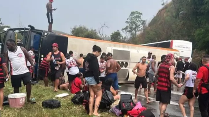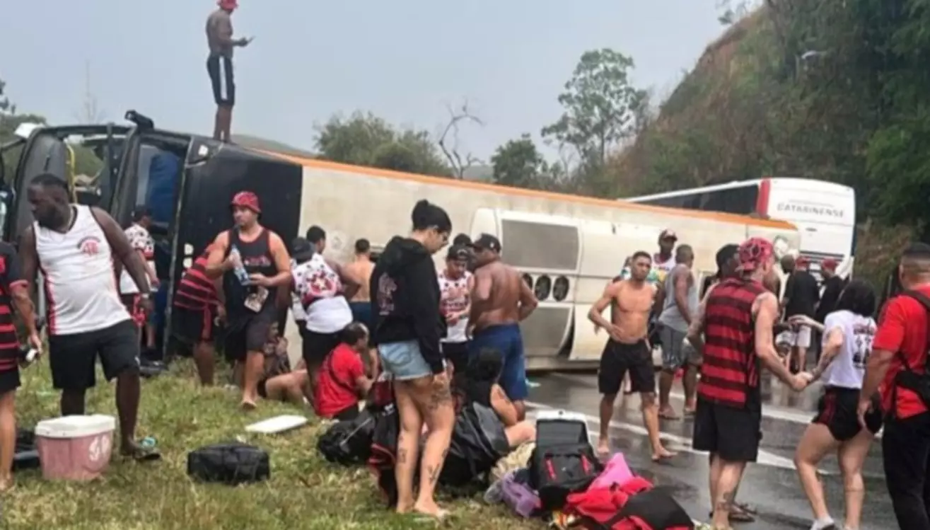 Un micro que transportaba a hinchas de Flamengo volcó este lunes en una autopista de Brasil. Los simpatizantes viajaban hacia Buenos Aires para ver el partido ante Racing, por la vuelta de las semifinales de la Copa Libertadores. Los reportes indican que hay al menos 46 heridos, cuatro de ellos de gravedad.