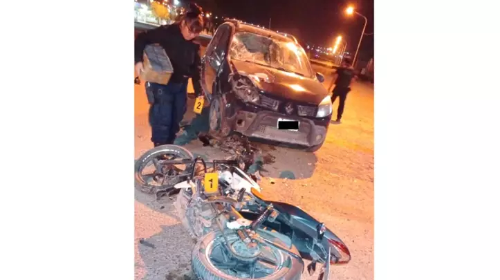 Ayer en horas de la madrugada se produjo un fuerte accidente de tránsito en la zona noroeste de la ciudad, en la intersección de las calles Domingo Savio y Avenida del Trabajo. Ocurrió a las 2 de la madrugada entre un vehículo y una motocicleta.