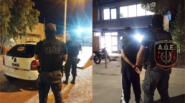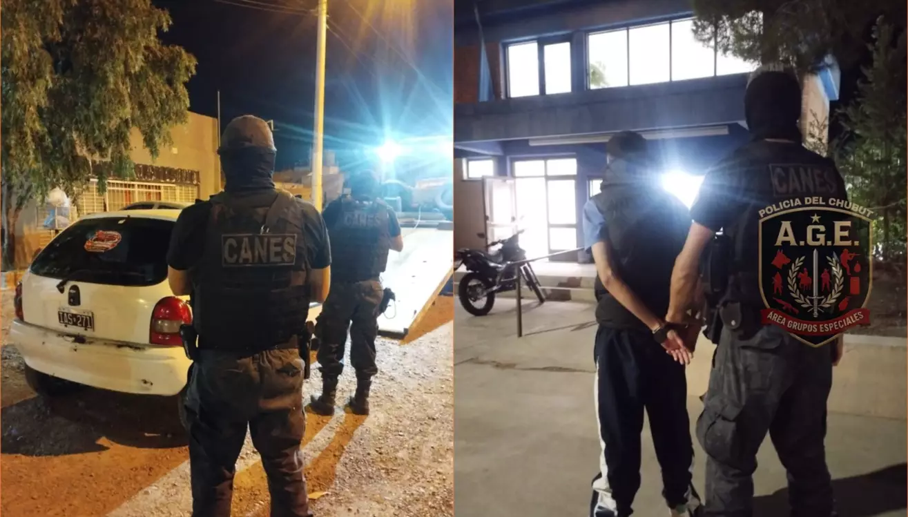 Según informó la Policía del Chubut, el hecho ocurrió alrededor de las 3:45, cuando personal de la División Canes que realizaba patrullajes preventivos detectó un automóvil Chevrolet Corsa blanco circulando a alta velocidad por las calles Pecoraro y Ecuador, con tres hombres en su interior.