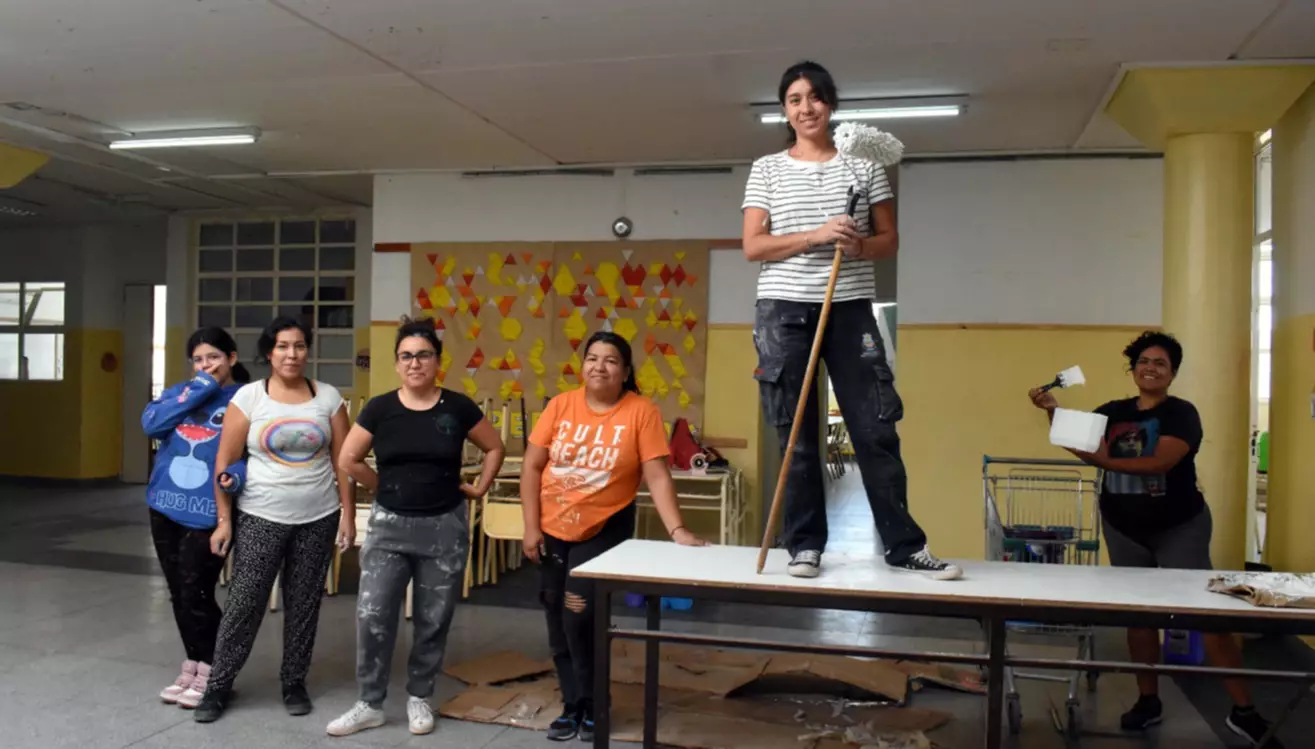 “Estamos pintando con tres mamás, una profe y dos ingresantes que vinieron a ayudar, una de ellas mi hija. La pintura de las aulas las conseguimos gracias a las familias y la pintura de la galería la donó el Rotary Club cinco latas de pintura, a partir de gestiones del año pasado con la directora Cecilia Pérez”, expresó.