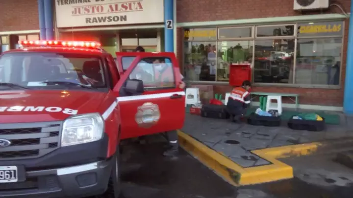 Los Bomberos Voluntarios desinfectaron la Terminal de Ómnibus de Rawson
