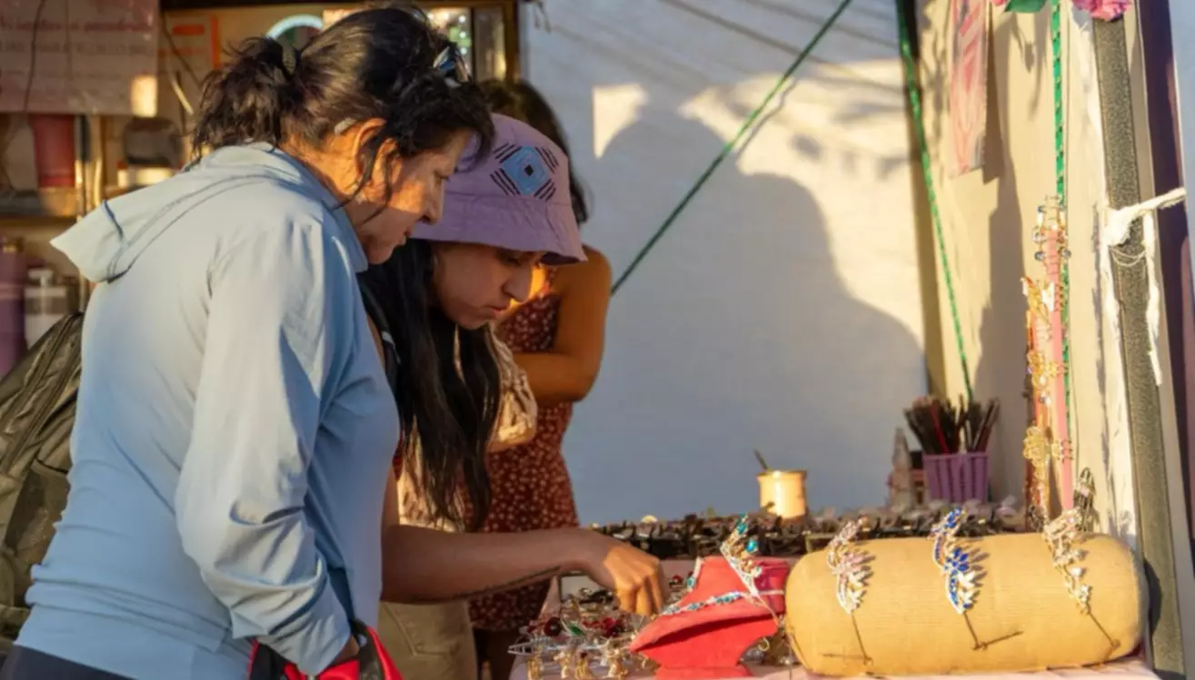 Vecinos, vecinas y turistas visitan de manera masiva la feria organizada por la Municipalidad de Rawson, que reúne más de 40 stands de emprendedores en el predio del Instituto de Seguridad Social y Seguros, ubicado sobre Juan Manuel de Rosas y Avellaneda, en el ingreso a Playa Unión, abierta de miércoles a domingo, de 18 a 00 horas, durante la temporada de verano 2026.