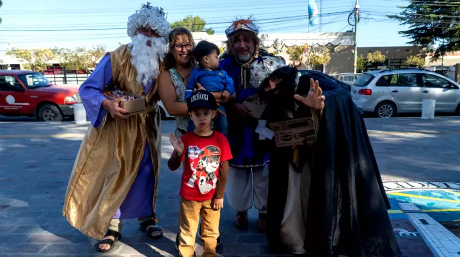 Gran convocatoria de familias en la llegada de los Reyes Magos a Rawson