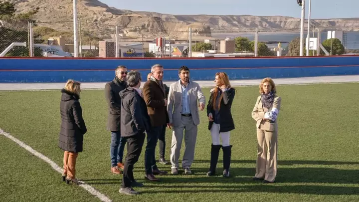 Previo a la entrega de las viviendas de servicios, el Gobernador junto a funcionarios recorrieron obras en ejecución que incluyeron el Polideportivo, el Hospital Rural Puerto Pirámides, los juegos de accesibilidad de Plaza Arcoíris, Luminaria Led. Supervisaron la obra de la Biblioteca Popular “Asunción Cobo”, la ampliación del Club Social y Deportivo.