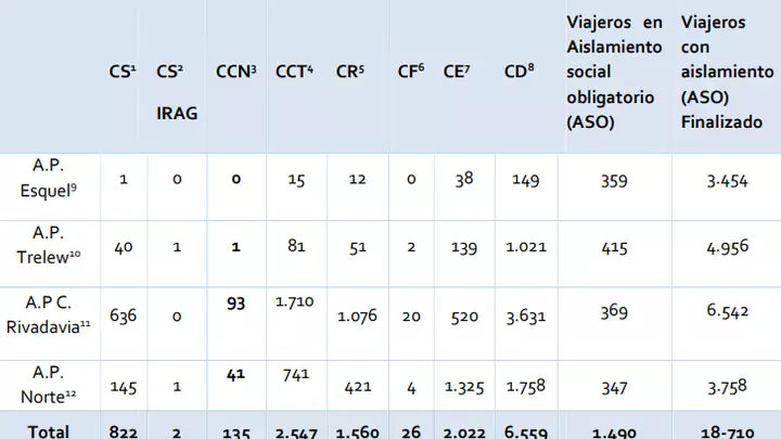 Se encuentran en estudio 824 casos sospechosos. Se descartaron 96 casos: 45 en AP Comodoro Rivadavia, 4 en AP Trelew, 43 en AP Norte y 4 en AP Esquel.