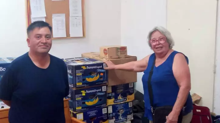 La presidenta del Consejo de Pastores de Iglesias Evangélicas de Trelew (COPIET), Argentina Calcavequia y el pastor Daniel Millán se hicieron presentes en la sede del Ejército de Salvación para observar el avance de la recaudación de donaciones que serán entregadas a las familias afectadas por los incendios en la Cordillera.
