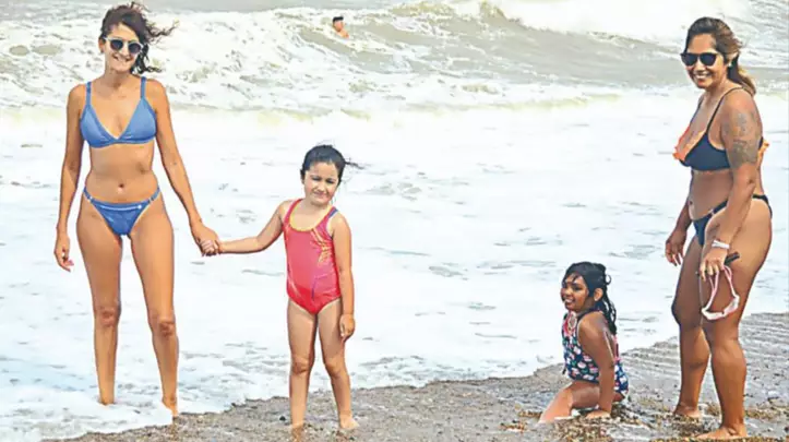La playa sirvió para compartir en familia, para caminar por la costanera o acercarse al golfito a los sectores donde revientan las olas para disfrutar del impacto del mar en su contacto con la orilla.