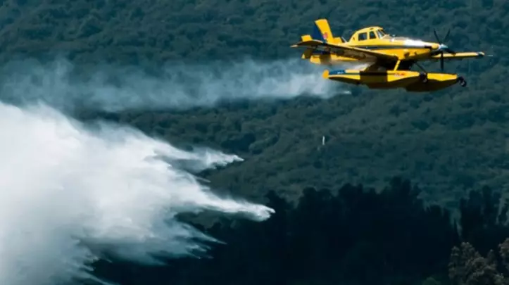 Por su parte, el Avión Hidrante tipo anfibio tiene una capacidad de descarga de 3.100 litros de agua, espuma o retardante, con una muy buena maniobrabilidad en terreno complejo, con capacidad para operar en valles angostos, serranías y áreas de difícil acceso.