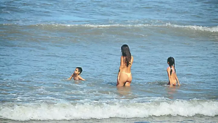 La imagen de la jornada reflejó claramente el espíritu del día: una extensa franja de playa colmada de gente. El mar se presentó calmo, con un oleaje suave que permitió que grandes y chicos se refrescaran sin inconvenientes, mientras otros optaron por caminar por la orilla o descansar bajo la sombra.