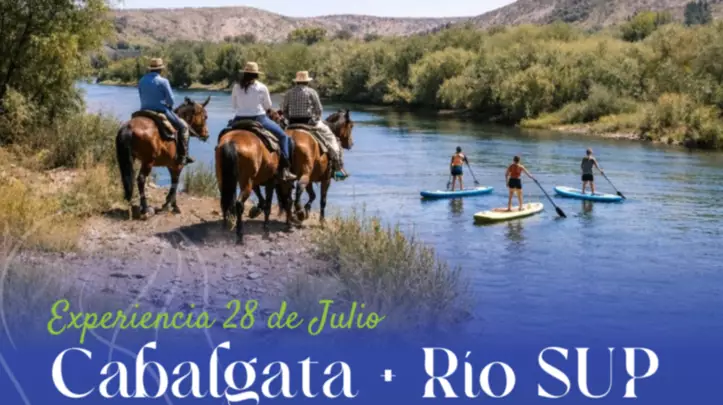 La actividad es con cupos limitados y tendrá como punto de encuentro la Chacra 335 de 28 de Julio e incluye una cabalgata guiada, a cargo de "Cabalgatas Chacra 335", un almuerzo con cordero patagónico y una experiencia de Stand Up Paddle (SUP) sobre el Río Chubut, a cargo de la institución "Río Vivo SUP".