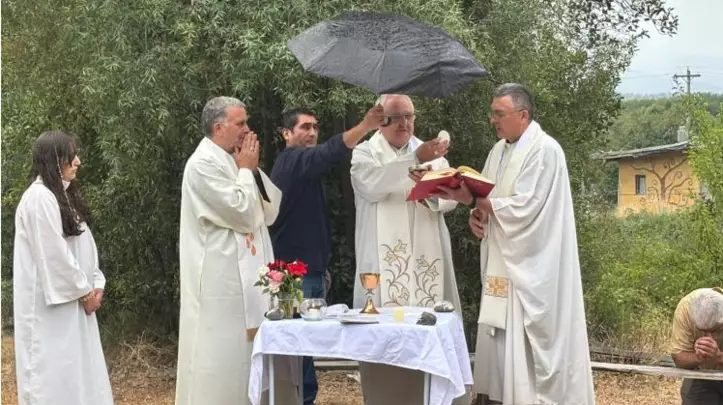 De manera coincidente, mientras se desarrollaba la misa comenzó a caer una lluvia suave sobre el lugar, un hecho que fue recibido con profunda emoción y gratitud por los presentes.