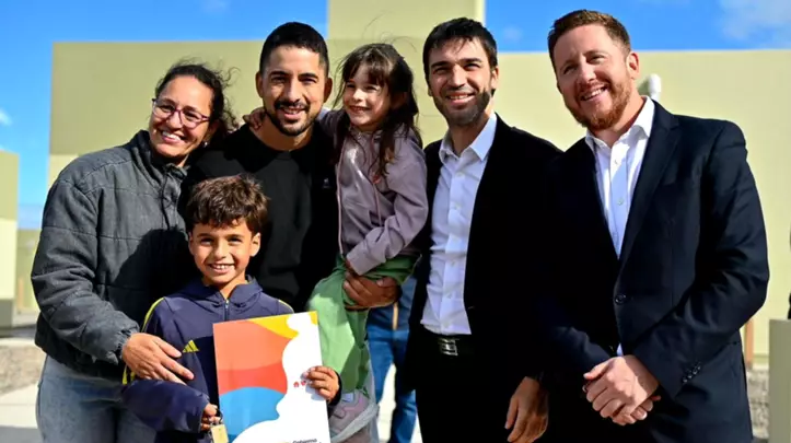 El gobernador del Chubut, Ignacio “Nacho” Torres, encabezó una nueva entrega de viviendas, en este caso en la localidad de Dolavon, donde diez familias de la comunidad recibieron la llave de su primer hogar.