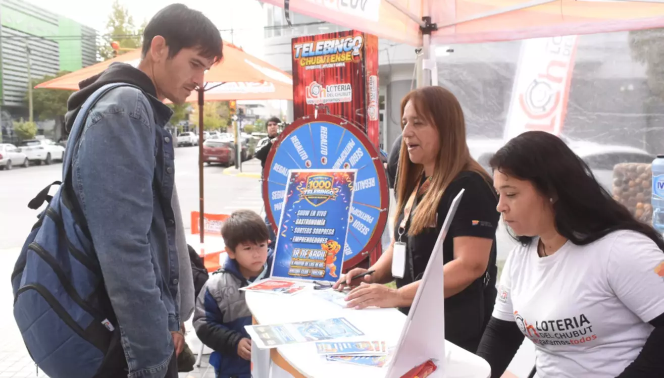 En la Plaza Independencia de Trelew se realizó ayer la presentación de la edición especial del Telebingo Chubutense que tendrá lugar el sábado 18 de este mes desde las 16 horas en el gimnasio del Club Racing de nuestra ciudad. La presentación fue encabezada por el presidente de Lotería del Chubut, Ramiro Ibarra, y la secretaria de Bienestar Integral, Mariana Medina.