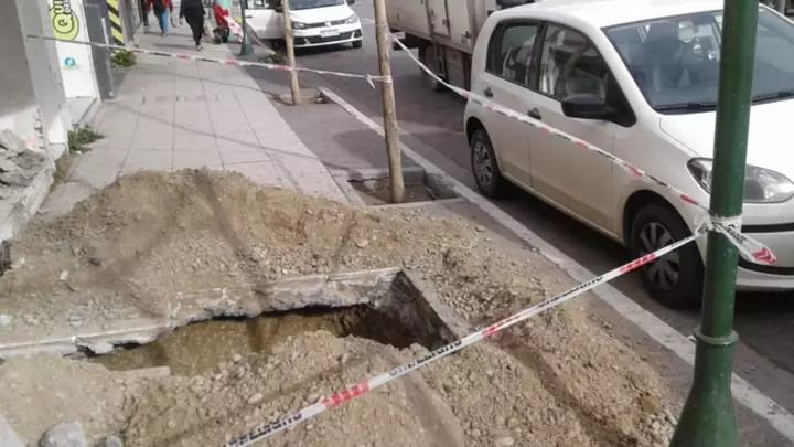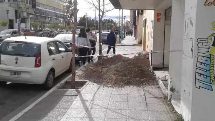 Quejas por una obra de gas que entorpece una vereda céntrica