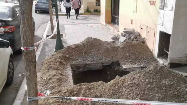 La obra presenta "un peligro" dice el vecino que se comunicó a nuestro Whatsapp, donde además reclamó que este pozo esta al descubierto sobre la vereda de 9 de Julio y Pasaje La Rioja, en pleno centro de Trelew.