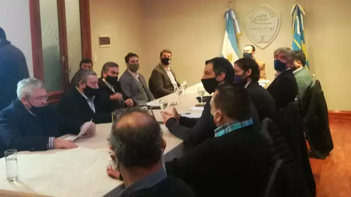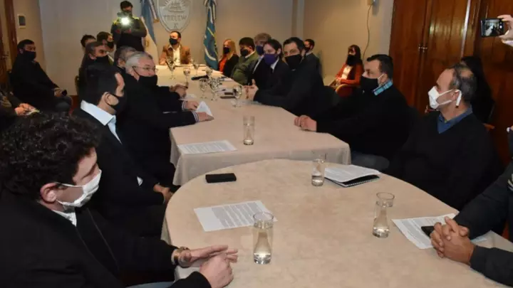 Sentados en la mesa se encuentra todo el espectro de actores involucrados: el sector productivo, comercial, Diputados provinciales oficialistas, ediles, representantes de la UNPSJB e instituciones.