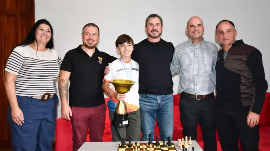 El intendente de Trelew, Gerardo Merino, recibió este martes en el Salón Histórico a Alfonso Uzcudún, quien recientemente se consagró campeón argentino de ajedrez en la categoría Sub-12.