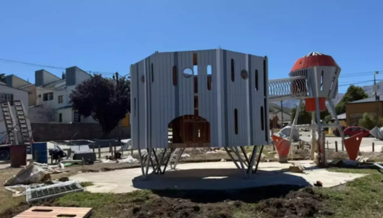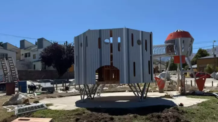 Comenzó la instalación de los juegos temáticos en la Plaza del Cielo en Esquel