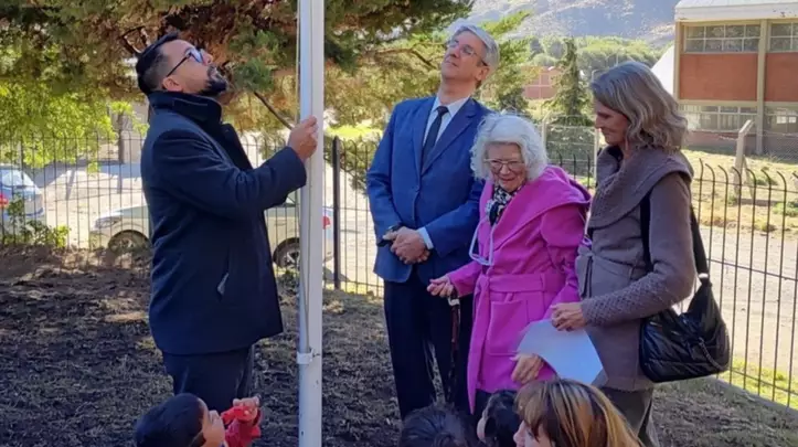 Seguidamente, los niños acompañados por sus docentes izaron el Pabellón Nacional junto al intendente Matías Taccetta, la presidenta de la Asociación Pro Ayuda Barrio Badén y el diputado Sergio Ongarato.