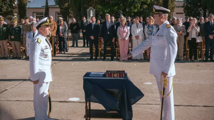 El acto protocolar fue presidido por el Comandante de la Aviación Naval, Comodoro de Marina Román Enrique Olivero, y contó con la presencia del secretario de Gobierno y Seguridad Ciudadana de Rawson, Ricardo Furci, en representación del Ejecutivo municipal, junto con funcionarios provinciales, autoridades civiles y la plana mayor de la Fuerza Aeronaval.